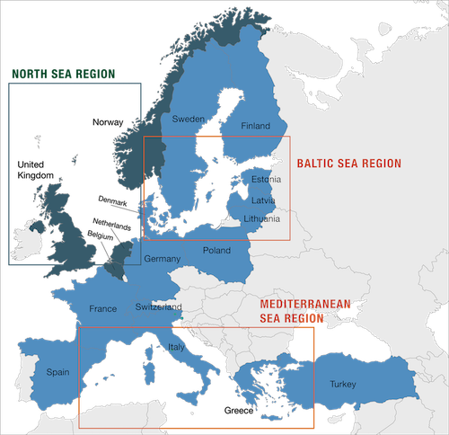 The Baltic Sea region covering Denmark including its inland waters and the easternmost North Sea, Sweden, Finland, Germany, Estonia, Latvia, Lithuania, Poland and the Baltic Sea.